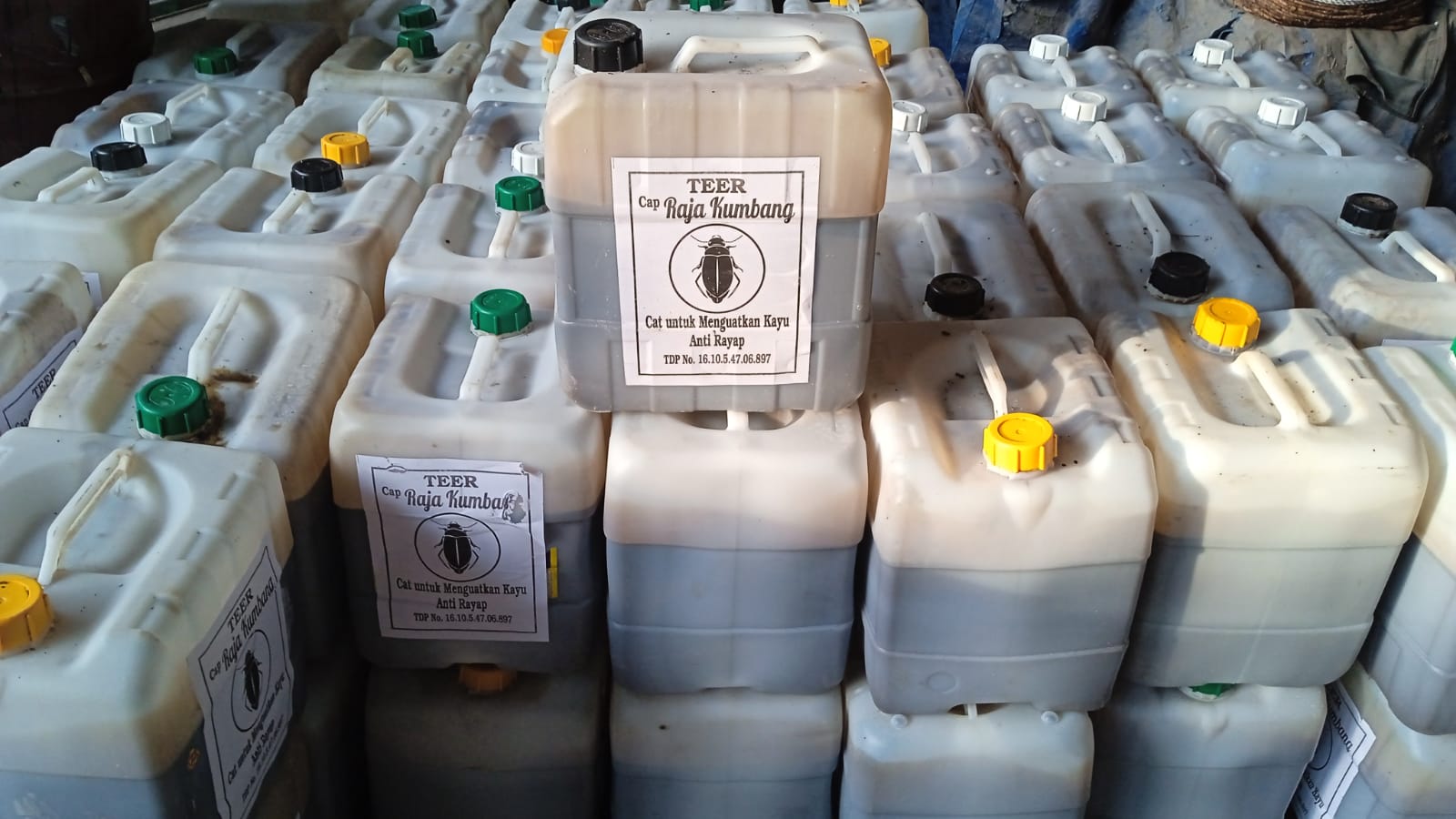 Teer cap Raja Kumbang cat menguatkan kayu anti rayap.